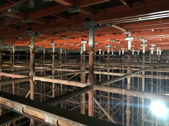 使用定型的系统模板同时解决标准层和非标层结构对建筑模板系统的设计是一大挑战,本项目采用空腹方管做边框的天和创新钢框模板系统,夹具连接灵活便捷,可以适应不同层高、不同结构类型的结构;面板采用韩国进口的LFT高分子模板,周转次数多大60余次,极大提高了模板的经济性;早拆模板配合合理的流水段划分,大大节约地下车库模板用量,经济效益明显;工具化的钢框模板体系提高了工人功效,几乎相当于2倍于木模板效率,工人接受程度高。