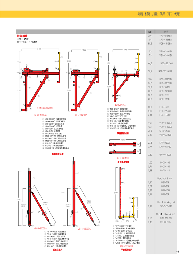 只需更换一些连接件,我公司的迈特-6型模板和拼装式墙模板都可以与本支撑系统配合使用,其他类型的模板同样也可以与之配合使用。